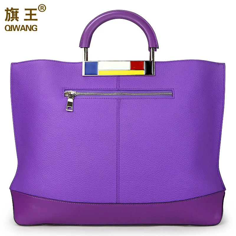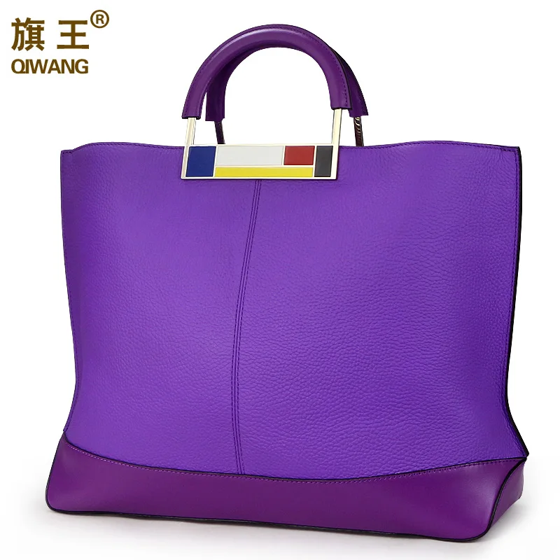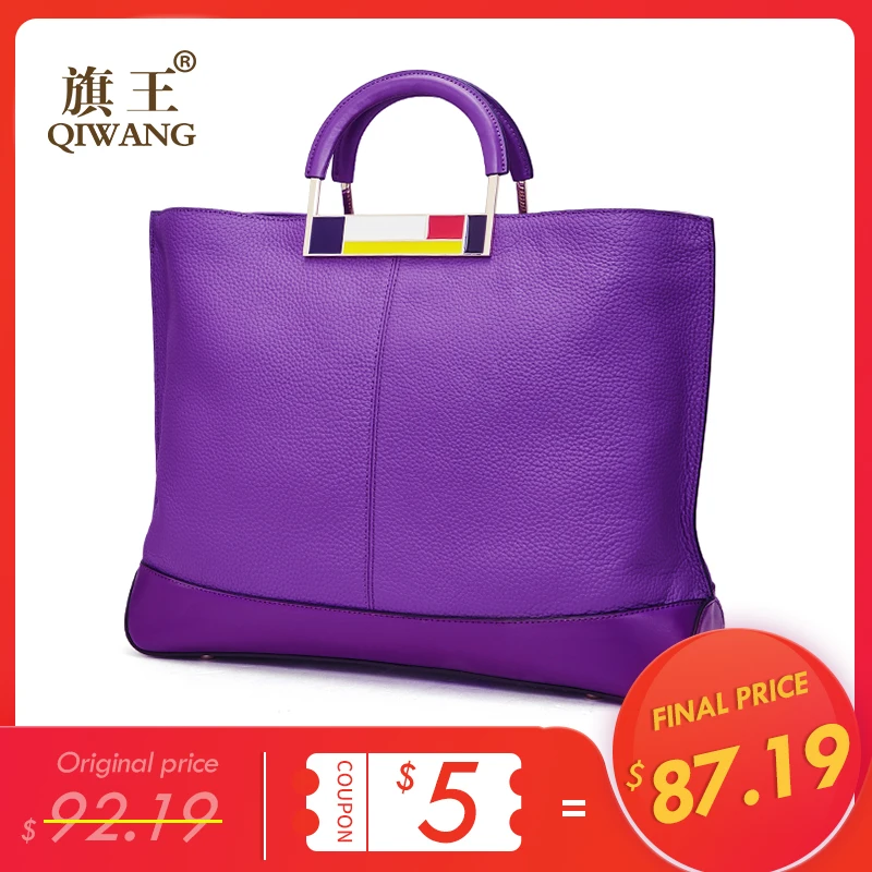 Get Qiwang Large Capacity Tote Bags Purple European Brand Handbags Designer Real Leather Women Handbag