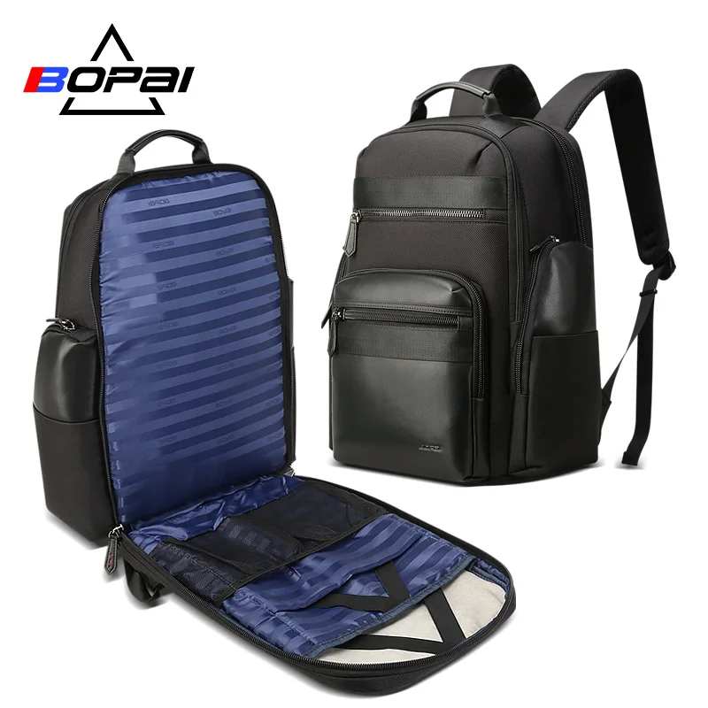 Discount BOPAI Men Travel Backpack Large Capacity Anti-thief USB Charging 17 inches Laptop Backpack Leather