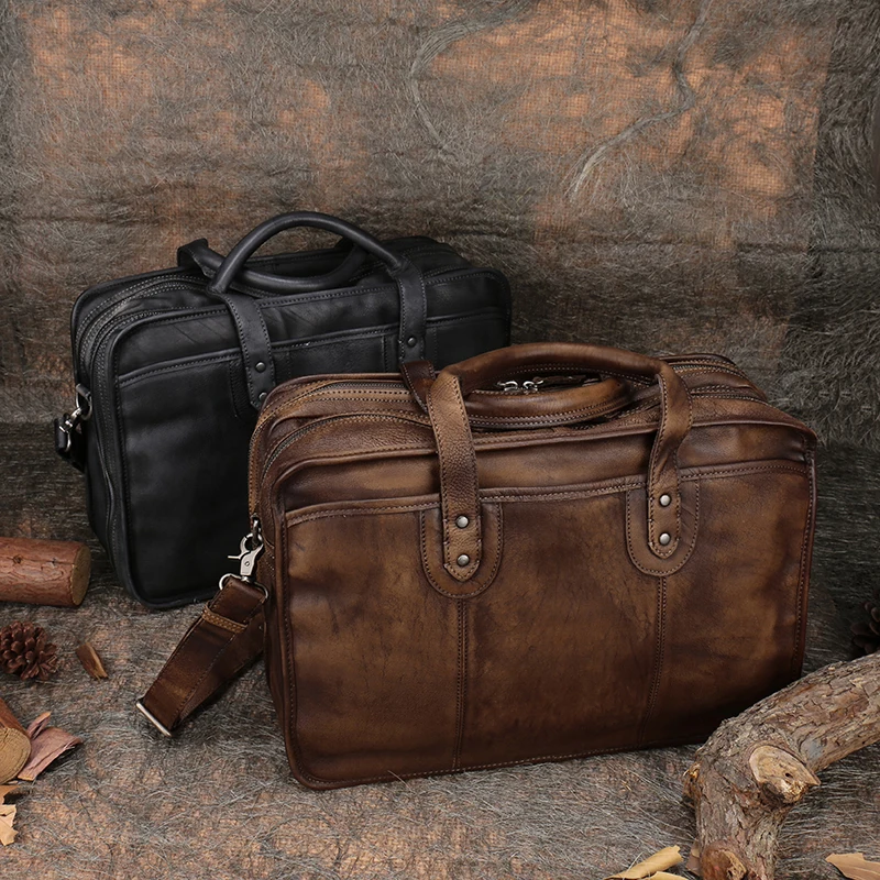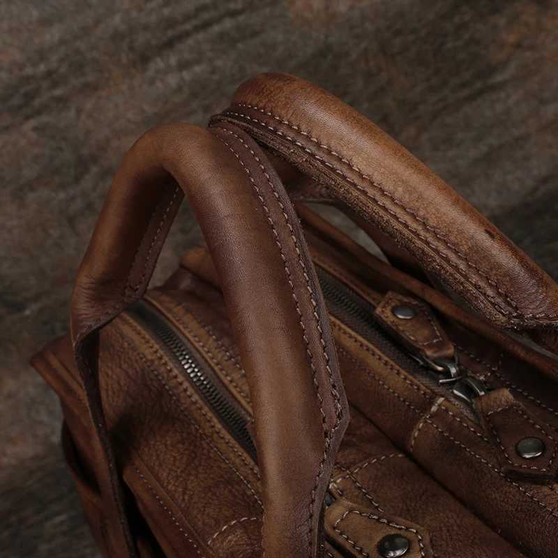 New Business Big Handbags Handmade Genuine Leather Shoulder Bag 2018 Retro Large-Capacity Laptop Bags C