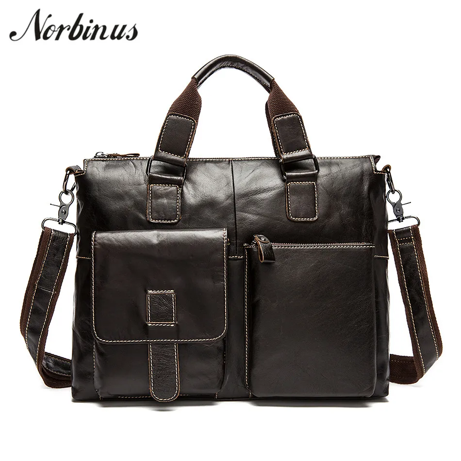 New Norbinus Men Briefcase Genuine Leather Laptop Computer Briefcases Male Cowhide Business Messenger S