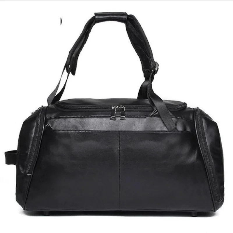 Hot Product 18" Man Black Cow Leather Travel Duffle Bag Male Business Large Capability Laptop Tote Weekend Bags